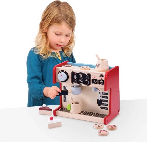 Otroci se lahko s tem kavnim aparatom preizkusijo, kakšno je biti barista. Set vključuje kavni aparat z odstranljivo ročko in gibljivim mlečnim dozirnikom. Vse je dopolnjeno s kontrolnim zaslonom z vrtljivim klikajočim gumbom in prebeljenimi gumbi.