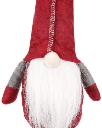 Božični škrat v rdečih tonih očara s svojim igrivim videzom – visoka koničasta kapa, puhasti beli brki in črtaste nogice postanejo opazen sezonski okras. Zahvaljujoč kakovostni izdelavi iz filca in trpežne plastike je lahek, a hkrati čvrst in pripravljen krasiti vaš dom vso zimo.