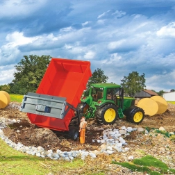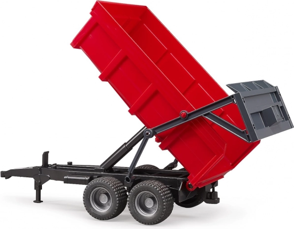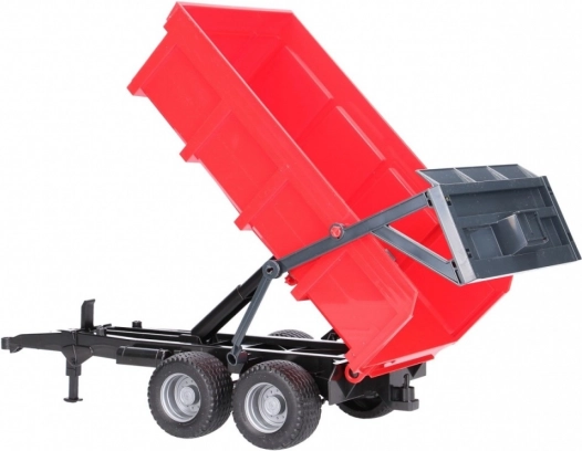 Rdeči zabojnik Bruder je popoln dodatek za vsakega malega kmeta. Ta priljubljena prikolica je opremljena z avtomatskim zadnjim pokrovom, ki se sam odpre med kipanjem, kar prinaša neprekosljivo realističnost v otroške igre. Zadnji pokrov ostane zaprt, če upravljanje ni vključeno, s čimer sta zagotovljeni varnost in funkcionalnost.