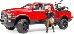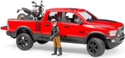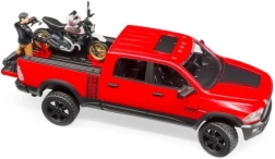 Uživajte v akcijskih pustolovščinah z robustnim pick‑upom Ram, ki brez težav prepelje motocikel Ducati Scrambler na pot. Realistični detajli, odpirajoča se vrata in prosto vrteča se kolesa dvignejo igro na novo raven. Figurica voznika odlično sedi za volanom in na motociklu ter skupaj ustvarita privlačne igralne scenarije.