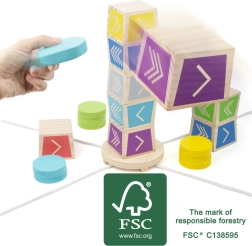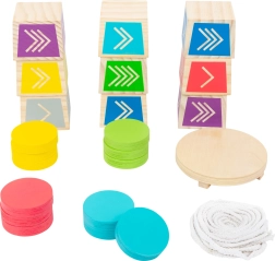 Uživajte v dinamični zabavi z družino in prijatelji. Ta lesena spretnostna igra v slogu Kubb navduši z preprostimi pravili in napetim potekom – naloga je z barvnimi diski zrušiti le vrhnjo kocko z zloženega stolpa. Zaradi kakovostne izdelave iz 100 % FSC lesa je igra trpežna, varna in prijazna do narave.