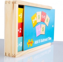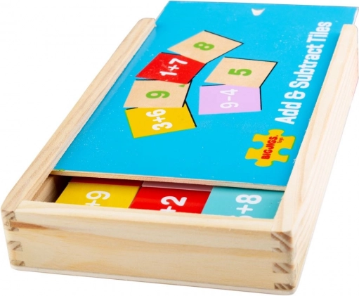 Leseni izobraževalni set z 81 igralnimi koščki ponuja pestre možnosti za vadbo seštevanja in odštevanja v razponu 1–9. Zaradi kompaktne škatlice je idealen za doma, v vrtec in na pot. Otroci si skozi igro utrdijo osnovne računske veščine ter hkrati razvijajo koordinacijo roke in očesa.
