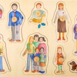 - 9 vstavnih koščkov: mamica, očka, dojenček, brat, sestrica, babica, dedek, kužek in prijatelji