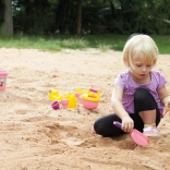 Igra s peskom razvija fino motoriko, koordinacijo rok in oči ter domišljijo. Odlična izbira za prve gradnje in ekipne igre.