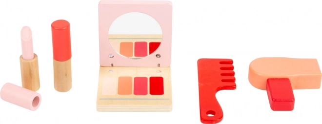 Leseni komplet vključuje različna orodja za nego lepote, ki otroke navdihujejo k ustvarjalnemu igranju in razvijajo njihove spretnosti.