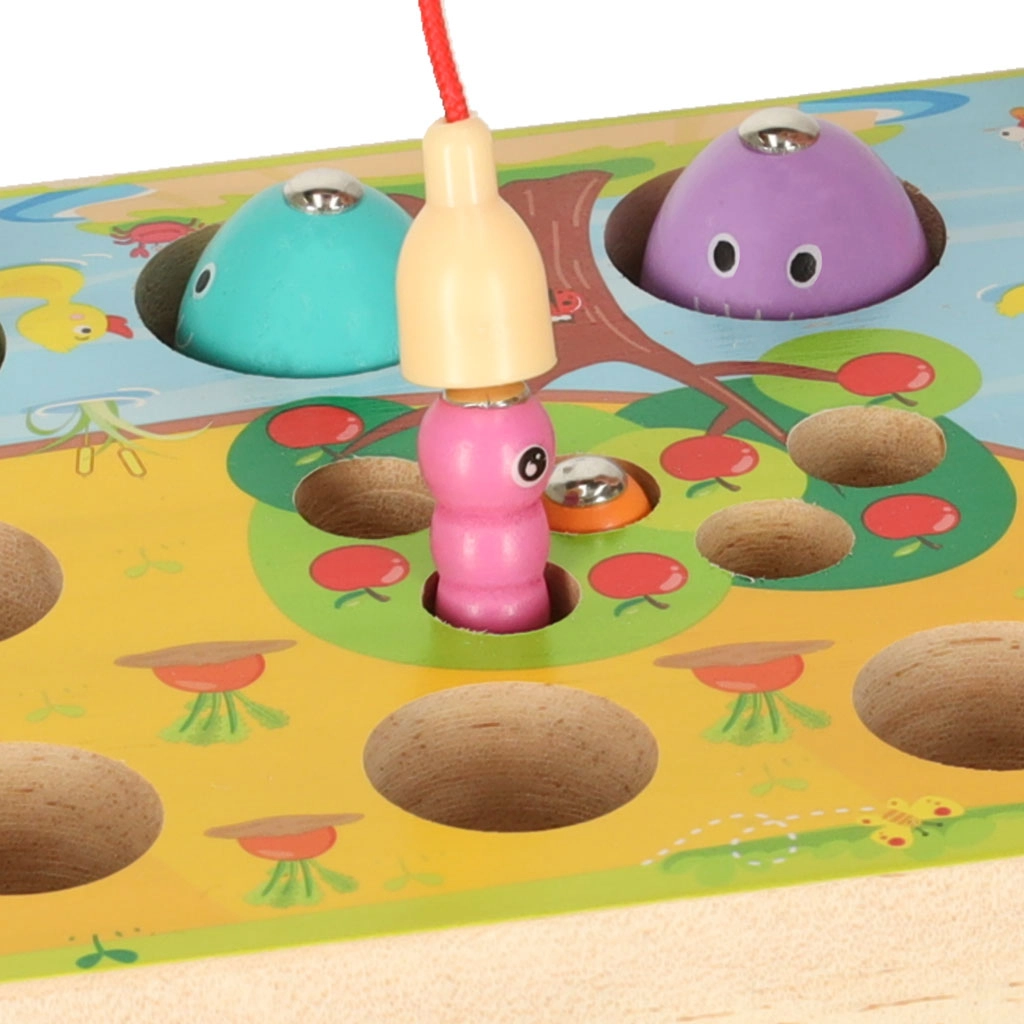 Magnetna ribiška palica z vrvico zahteva natančne gibe, s čimer krepi koordinacijo oko–roka in uri potrpežljivost pri lovljenju ribic in črvičkov.