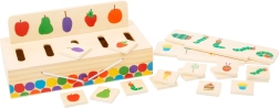 Ta kakovostna lesena igra naravno podpira razvoj otrok skozi igro. Barvite lesene ploščice se vstavljajo v ustrezne odprtine v pokrovu, otrok pa pri tem vadi razvrščanje po obliki in barvi, koordinacijo oko–roka ter potrpežljivost. Zaradi kompaktnih mer je škatlica odlična spremljevalka doma in na poti.