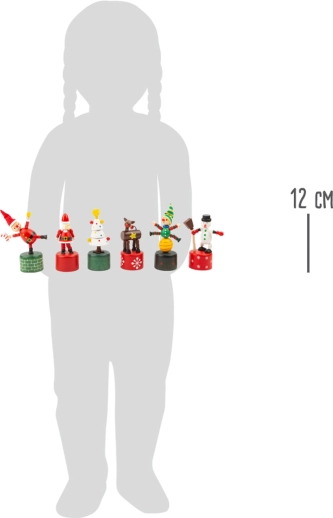 Komplet 12 kosov. Se ta snežak res premika? Da, tako je. Nekaj lesenih božičnih figuric se premika sem in tja, vendar le, če pritisnete gumb na spodnji strani njihovega podstavka. Primerno kot darilo v času adventa.