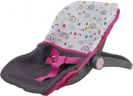 Ta vsestranski avtosedež za punčko z veselimi mavričnimi motivi se v hipu spremeni v praktičen stolček za hranjenje. Otrokom ponuja realistično igro vlog staršev, podpira domišljijo, empatijo in fino motoriko.