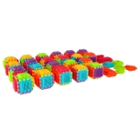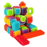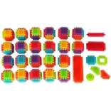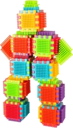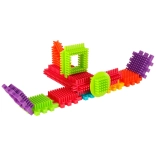 Bloki so izdelani iz kakovostne plastike, so zelo lahki, prilagodljivi in hkrati izjemno trpežni. Pomagajo pri učenju novih oblik in barv ter razvijajo ročne spretnosti. Bloki so zasnovani tako, da spodbujajo razvijajoče se otrokove čute: vid z izrazitimi barvami in tip z originalno obliko ter načinom spajanja. Bloki, ki vam ponujajo čudovite možnosti za ustvarjalno igro! Poleg tradicionalnega kombiniranja kot pri običajnih kockah lahko te bloke povezujete tudi po celotni površini stranice, kar vam daje dodatno možnost ustvarjanja. Uporabite jih lahko za gradnjo stavb, robotov in drugih konstrukcij!