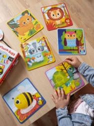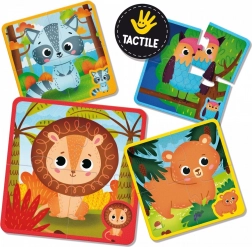 Komplet Montessori otipna sestavljanka vsebuje 24 kosov, iz katerih je mogoče sestaviti 6 različnih slik živali. Vsaka žival ima poseben hrapav površino, ki otrokom pomaga razvijati otip in opazovalne sposobnosti. Te sestavljanke so zasnovane tako, da vključujejo vse otroške čute in podpirajo njihov naravni razvoj.