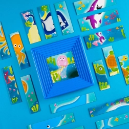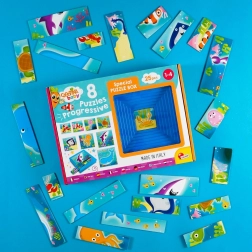 Progresivne sestavljanke CAROTINA Baby prinašajo otrokom veselje do sestavljanja že od prvih korakov. Vsaka od 8 sestavljank ima različno število koščkov in postopno zvišuje zahtevnost, tako da otrok naravno razvija veščine brez frustracij. Tematske ilustracije iz morskega sveta spodbujajo odkrivanje in igro.
