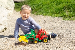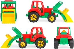 Odkrijte robusten otroški traktor z nakladačem, ustvarjen za igro doma in na vrtu. Zahvaljujoč trdni konstrukciji in kakovostni plastiki se odlično obnese v pesku, na dvorišču in v otroški sobi. Sprednja žlica je enostavna za upravljanje ter spodbuja razvoj fine motorike in domišljije.