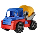 Ta igrača avtomobilček ima vrtljiv boben, ki se lahko nagiba za enostavno praznjenje.
