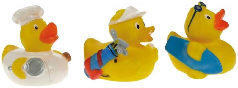 Odkrijte kolekcijo kopalnih račk Profesionalci – simpatične figurice različnih poklicev, ki zabavajo otroke in hkrati spodbujajo njihovo domišljijo. Račke so izdelane iz varnega materiala brez ftalatov in se zaradi kompaktnih mer zlahka držijo tudi najmlajši.