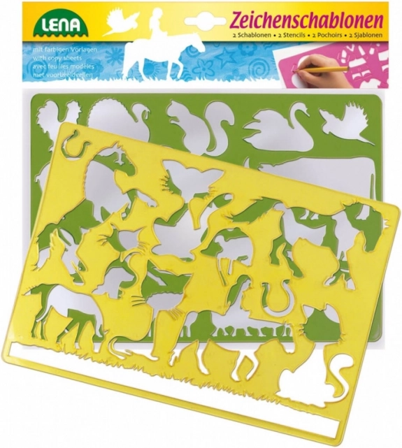 Odkrijte zabavno risanje z naborom šablon LENA z motivi konjev in mačk. Dve veliki šabloni velikosti 27 × 23 cm pomagata otrokom ustvarjati natančne slike ter razvijati njihovo fino motoriko, domišljijo in občutek za barve. Idealno ustvarjalno orodje za otroke od 3 let dalje.