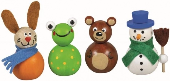 S tem ustvarjalnim kompletom si otroci enostavno sestavijo in okrasijo do tri izvirne lesene figurice. Posamezne lesene dele se lepi z običajnim belim lepilom za les in papir, barva pa z vodotopnimi barvami ali permanentnimi flomastri. Zaradi preprostega postopka in priloženih navodil je ustvarjanje zabavno in pregledno.