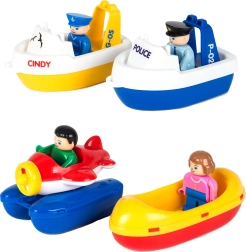 V kompletu je 41 delov, vključno s 4 figuricami in dodatki: čolnički, policijski čoln, hidroplan in splav. Idealno za skupno igro in izmišljanje zgodb.