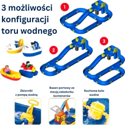 Komplet je preprost za sestavljanje – tesnjenje ne zahteva lepljenja, zato se lahko hitro lotite igre. Trpežen material je odporen na vodo in primeren za uporabo na prostem. Set je združljiv z LEGO DUPLO, zato lahko širite scenarije igre in gradite lastne vodne svetove. Možnost postavitve 3 različnih konfiguracij steze prinaša vedno nove izzive in ideje.