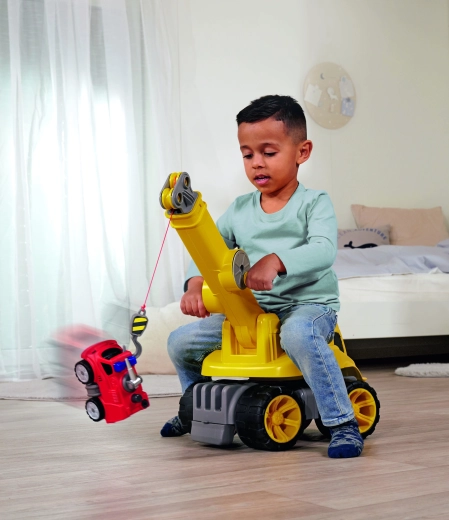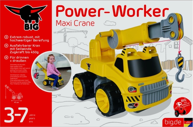 Maxi žerjav BIG Power Worker je stabilen poganjalec iz kakovostne, robustne plastike, zasnovan za dolgo življenjsko dobo in varno zabavo. Stolp žerjava se vrti za 360°, premična roka pa je enostavna za upravljanje, tako da lahko otroci z zmogljivim vrvnim vitlom z vlečno silo do 450 g dvigujejo in premikajo predmete.