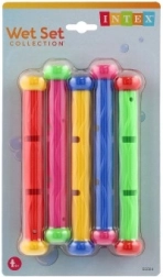 Komplet vsebuje 5 kosov trpežnih palčk dolžine 30 cm z gumijastim telesom in plastičnimi zaključki. Idealne so za bazen za otroke od 6 let – za vadbo potapljanja, zadrževanja sape in samozavesti v vodi.