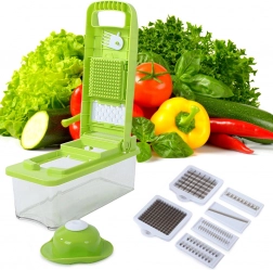 Praktični sekljalnik in ribežen je idealen pomočnik za vsako kuhinjo. Bliskovito nareže sadje, zelenjavo, kuhana jajca in sir na kocke, rezine in trakove, poleg tega pa zmore tudi valovite reze. Zahvaljujoč prozorni posodi s pokrovom s prostornino 1,5 l lahko pripravljene sestavine takoj shranite v hladilnik. Nerjaveča rezila so zelo ostra in zagotovijo čist rez brez stiskanja živil.