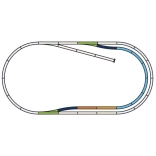 V povezavi s kompleti A in B sestavite ločeno napajani oval s slepim (končnim) tirom. Podlaga za ta komplet je na voljo le kot posamezni elementi.