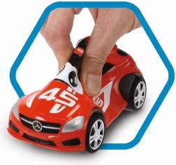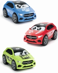 Veselo stiskalno vozilce MERCEDES ABC z dolžino 11 cm razveseli najmlajše voznike: ima mehko karoserijo z zabavnimi očkami in se vozi s pomočjo vzmetnega mehanizma na poteg. Na voljo so 3 barve – rdeča, modra in zelena.