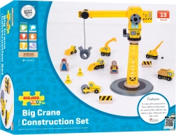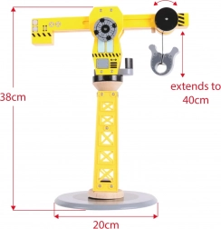 Ta kakovosten leseni gradbeni set z vrtljivim žerjavom in magnetnim kavljem prinaša otrokom neskončne možnosti igre. Zaradi robustne izdelave in varnih materialov je idealen za vsakodnevno igranje in razvoj veščin. Živahna rumena barva gradbenih vozil otroke takoj pritegne.