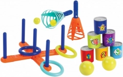 Uživajte v zabavi s Setom iger 3 v 1, ki vključuje tri priljubljene igre za notranje in zunanje prostore: ulovi žogico, obročki na križ in podiranje pločevink. Izdelano iz trpežnih plastik v Franciji.