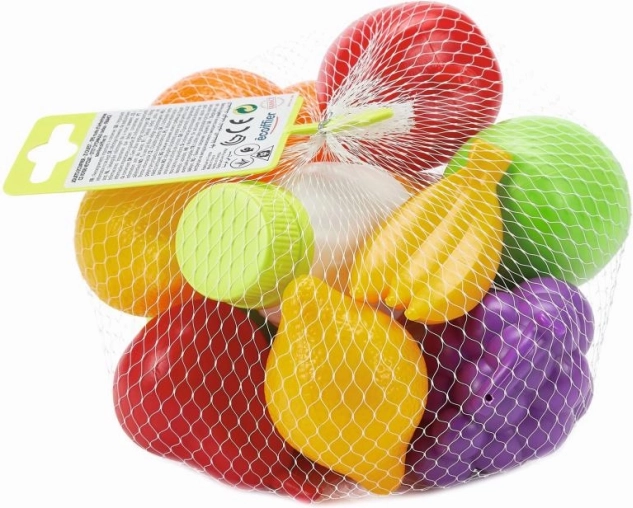 Ta set sadja in zelenjave v mreži je popoln dodatek za otroške igre v kuhinji ali kot oprema trgovine. Omogoča otrokom razvijati njihovo domišljijo pri igranju prodajalca ali kuharja.