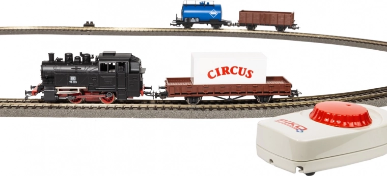 Popoln začetni set, pripravljen za vožnjo takoj po razpakiranju. Idealna kombinacija za zabavo, urjenje upravljanja in prihodnje razširjanje postavitve tirov.