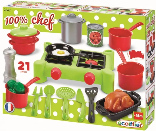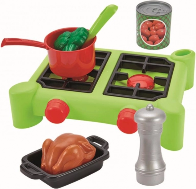 Set štedilnikov s posodo je idealen za vsakega malega kuharja. Ta dvoplotni set vsebuje vse, kar potrebujete za ustvarjanje zabavne in realistične kuhinjske izkušnje.