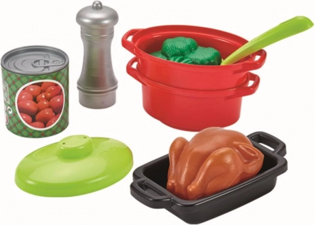S tem kompletnim setom posode se lahko otroci zabavajo z neskončnimi urami kuhanja. Set vključuje lonce s pokrovi, kozice, ponev, pekač in različna živila, ki dodajo realističnost.