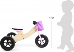 Ta poganjalec združuje prednosti tricikla in dvokolesnega poganjalca, tako da lahko otroci postopoma osvajajo spretnosti ravnotežja in vožnje.