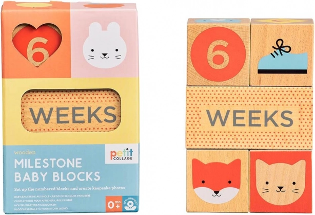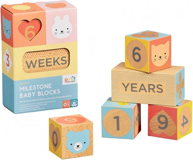 Stilske mejnikove kocke znamke Petit Collage pomagajo ujeti najpomembnejše trenutke vašega dojenčka in nosečnosti. Set iz bukovega lesa s certifikatom FSC ponuja barvne potiske, številke in simbole za ustvarjanje izvirnih in preglednih fotografij. Idealno za rojstvo, prve mesece in leta ter za nosečniško fotografiranje.