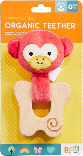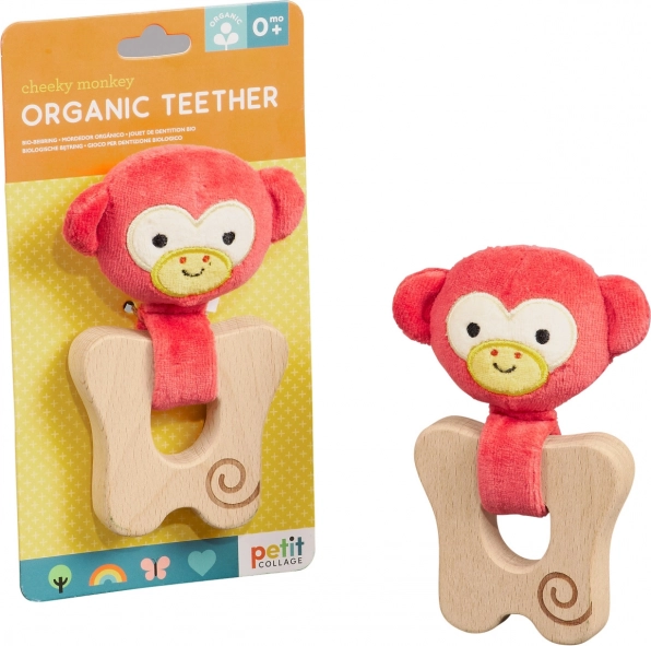 Ljubko grizalo Petit Collage v obliki opičke združuje mehak organski bombaž in trden bukov les FSC za varno in pomirjujoče grizenje. Zahvaljujoč enostavnemu prijemu za majhne roke je idealno od rojstva in pomaga pri rasti prvih zobkov. Izdelano s skrbjo do narave – brez plastične embalaže in s polnilom iz recikliranih materialov.