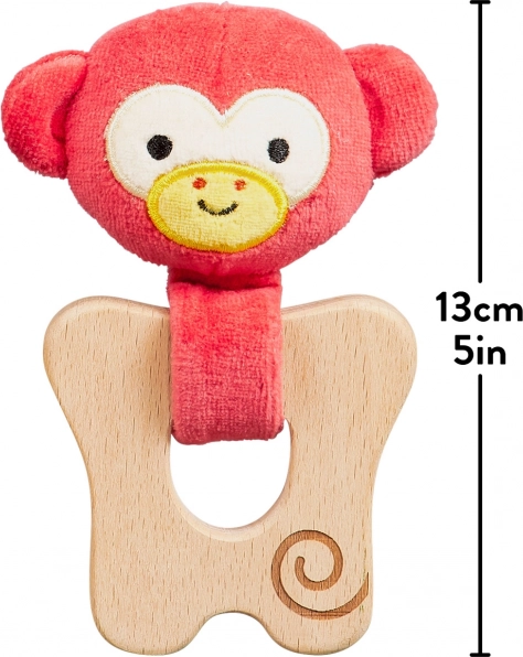 Grizalo z glavico vesele opičke prinaša dojenčku tolažbo in zabavo. Tekstilni del iz organskega bombaža je prijeten na dotik, lesen obroč iz FSC certificiranega bukovega lesa je gladek in trpežen. Ergonomska oblika podpira razvoj fine motorike in varen oprijem.