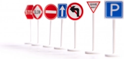 1 × letalo, 3 × avtomobilček, 1 × set prometnih znakov