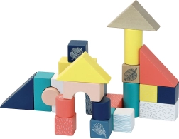 Vsebuje 24 kock različnih oblik in barv, ki spodbujajo ustvarjalnost in prostorsko razmišljanje.