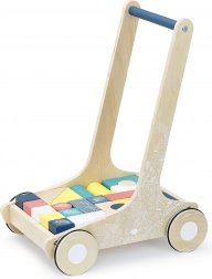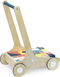24 kock različnih oblik je priloženih vozičku, kar otrokom ponuja nešteto možnosti za ustvarjalno igro. Voziček ima modernega dizajna z modrim držalom in belimi ilustracijami.