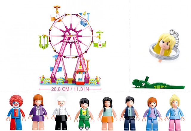 Glavni poudarek seta je veliko rožnato-modro Ferrisovo kolo z delujočo rotacijo in več kabinami. Otroci lahko atrakcijo zlahka zavrtijo in ustvarijo realistično vzdušje sejma.