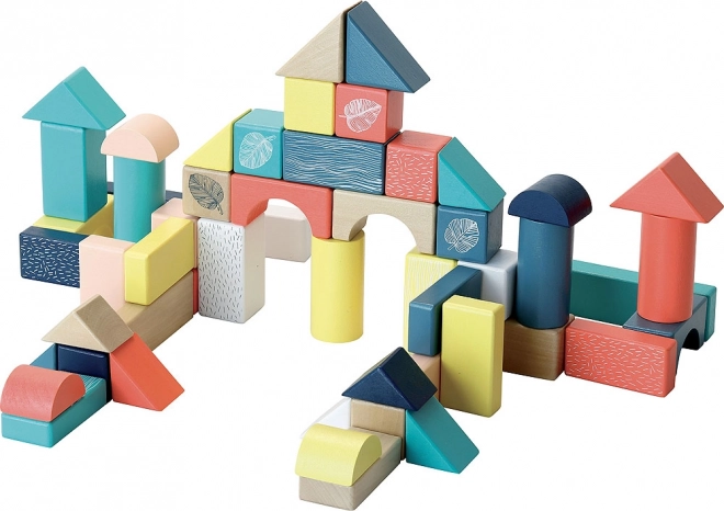 Ta set lesenih kock Canopée ponuja pisano kombinacijo barvnih in naravnih delov v številnih oblikah – od kvadrov in kock do lokov, valjev in trikotnikov. Otroci lahko gradijo stolpe, hiše in celo mesteca, razvijajo domišljijo ter se učijo osnovnih načel ravnotežja.
