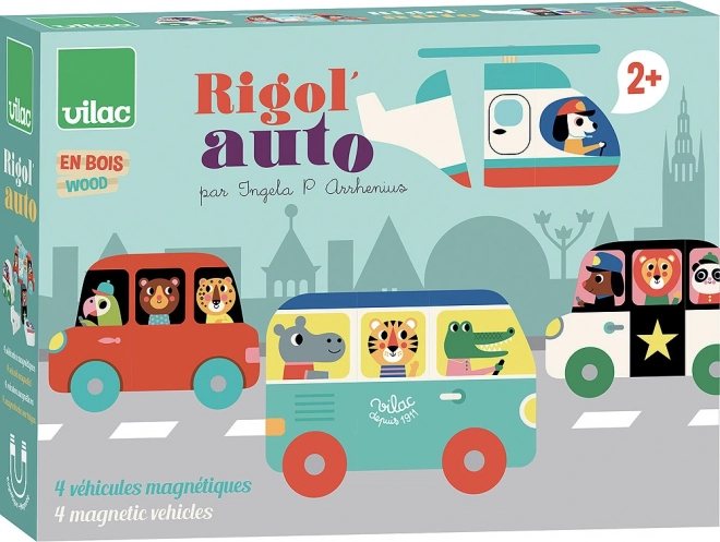 Lesene magnetne sestavljanke Vilac otrokom prinašajo učenje skozi igro in neskončne možnosti kombiniranja. Iz 12 trdnih koščkov zlahka sestavite 4 prevozna sredstva ali ustvarite povsem izvirna vozila po svoji domišljiji. Kakovostna lesena izdelava in gladki robovi zagotavljajo varno in prijetno igro.