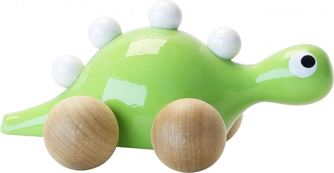 Uživajte v zabavi z lesenim dinozavrom na kolescih znamke Vilac. Ta prikupni dinozaver je pobarvan v zeleno in okrašen z belimi izrastki na hrbtu. Zahvaljujoč lesenim kolescem lahko vaš mali raziskovalec z dinozavrom zlahka vozi po hiši ali na prostem.