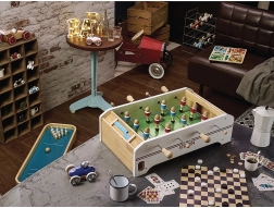 Odkrijte kakovosten leseni namizni nogomet VILAC Stadium, ki združuje tradicionalno igračniško obrt z modernim oblikovanjem. Otroci vadijo koordinacijo, odzivnost in strategijo, medtem ko se odlično zabavajo v napetih dvobojih. Kovinske palice z gladkim tekom in leseni ročaji zagotavljajo udobno upravljanje igralcev v rdečih in modrih dresih.