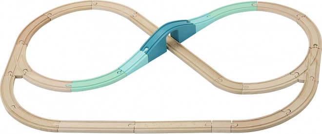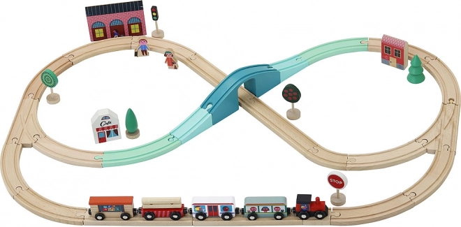 Set je združljiv z drugimi lesenimi vlakovnimi progami na trgu, zato lahko progo kadarkoli razširite. Retro kovček zagotavlja praktično shranjevanje in prenašanje, izvirni dizajn Ingele P. Arrhenius pa celotnemu setu doda edinstven slog.