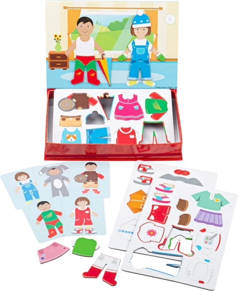 Nova serija magnetne sestavljanke »Obleke« znamke Bigjigs Toys ponuja neskončne možnosti za razvoj otroške ustvarjalnosti in pripovedovanja zgodb. Sestavljanka vsebuje številne igralne elemente, ki zagotavljajo, da bo vsaka igra edinstvena in zabavna. Set je dobavljen v robustni škatli z magnetnim pokrovom, ki omogoča enostavno shranjevanje in prenašanje. Izdelano iz visokokakovostnih in odgovorno pridobljenih materialov, sestavljanka izpolnjuje veljavne evropske varnostne standarde.