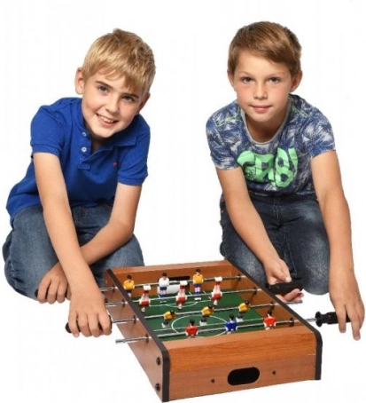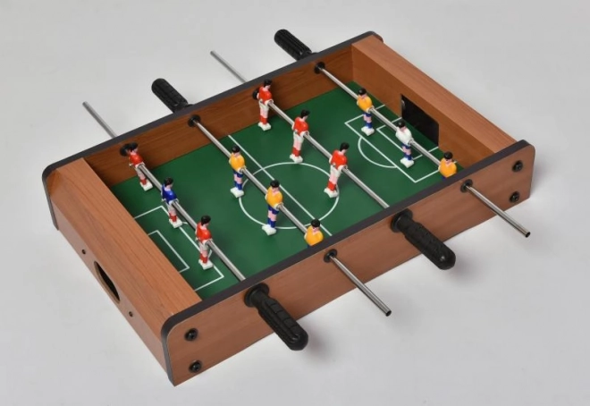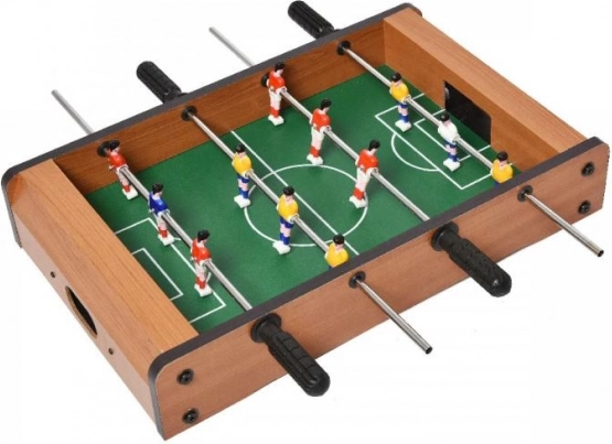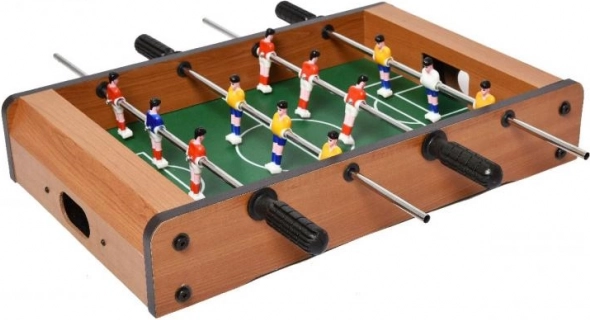 Ta manjši namizni nogomet je idealna izbira za vse ljubitelje nogometa, ki želijo uživati v zabavi tudi doma. Izdelan je iz barvnega in lakiranega lesa, kar zagotavlja dolgo življenjsko dobo. Vsaka ekipa ima 6 nogometašev, nameščenih na dveh palicah, ki omogočajo enostavno upravljanje in simulacijo prave nogometne tekme.