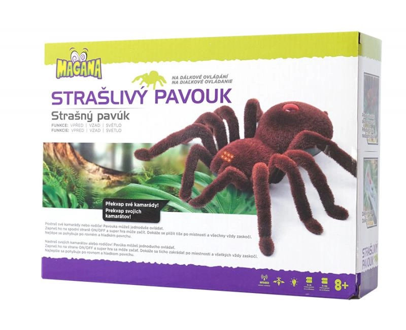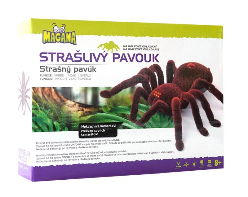 Pajek se realistično plazi, njegove oči in zadek pa svetijo, zato je v temi še bolj strašljiv in zabaven.